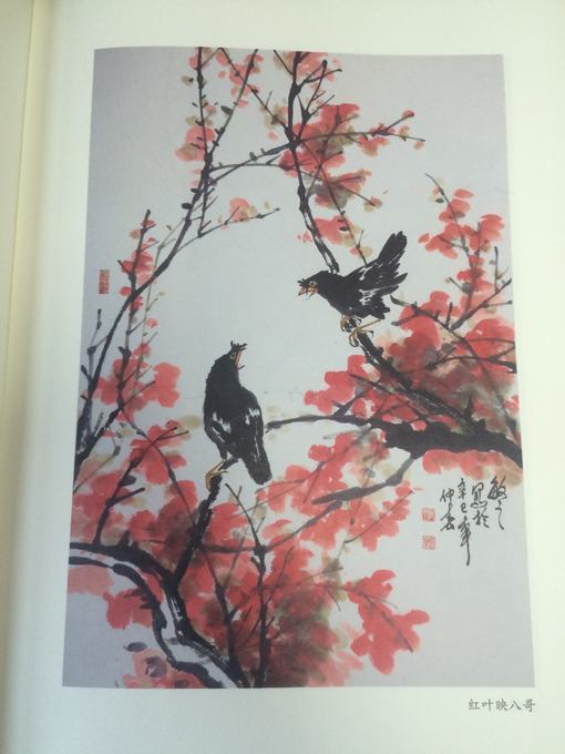 作品《红叶映八哥》