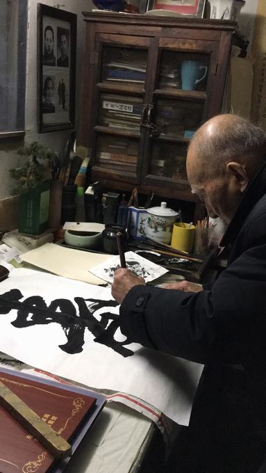 图为老人现场挥毫书写