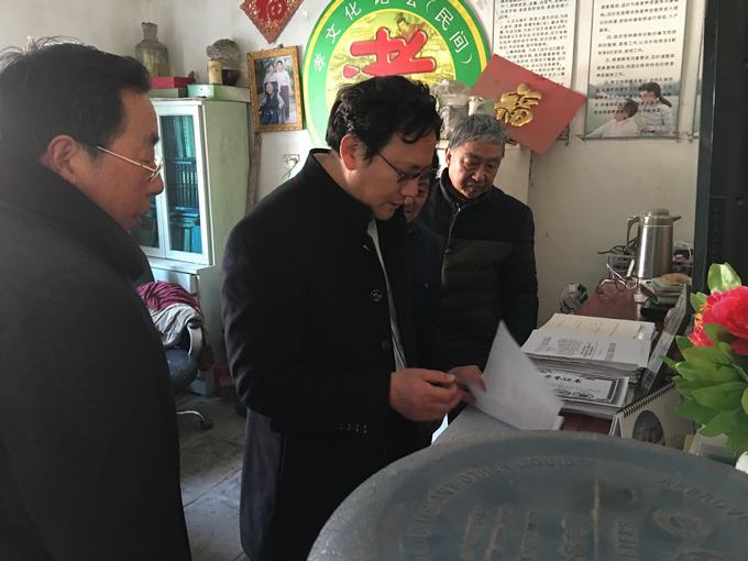 图为杨爱国一行现场查看申道山的家庭档案