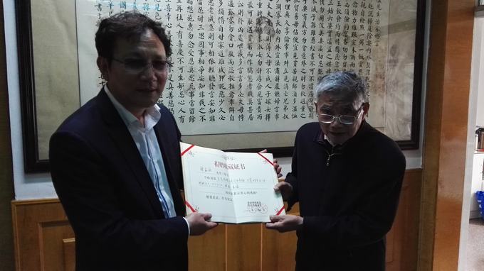 4月25日,我局由局长杨爱国带队,深入九旬老人韩寅官家中开展书画档案征集工作,征集得毛泽东词《沁园春.雪》篆书作品一副以及《水调歌头》行草作品一幅。